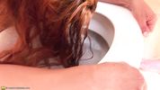 Пока не видит жена, муж отпялил её рыжую подружайку в рот, и даже немного обоссал