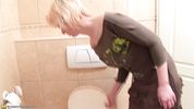 Зрелая блонда в туалете внезапно наглоталась крупного арабского хуя