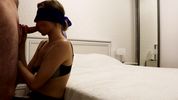 Описание:Парочка любовников решила заняться пикантным сексом, поэтому телка надела повязку на глаза и черные чулки на ножки чтобы как следует возбудить мужика.