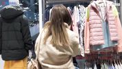 Чтобы уговорить парня подольше пошопиться, сисястая девка поработала над его хуем в примерочной