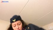 Развратная стюардесса в перерывах между рейсами предпочитает попрыгать на хую у пилота