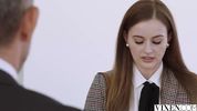 Рыжая миленькая секретарша жарко извиняется за опоздание, соснув мощный хуй босса и отдав на трах своё тело
