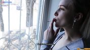 Пока мужа нет дома, блондинка по-быстрому отсосала соседу