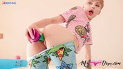 Стриженая малышка считает, что искусственный радужный хуй - лучшая альтернатива поднадоевшему скейту
