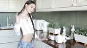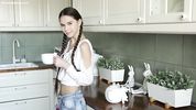 Худышка с косичками разделась на кухне