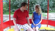 Описание:"Если тёлка согласна на знакомство на улице, то она точно даст в жопу" - так думает этот пикапер. И он снова высматривает новую жертву для своего неутомимого хуя. А вот и цель подвалила: не особо красивая блонда, которая хиляет, как блядь на своих стройных ножках, чтобы выпасть на отдых в беседке. Но вскоре она была уже круто заболтана парнем и идёт с ним на хату, где без колебаний расчехлит перед ним и свою писю, и сраку.
